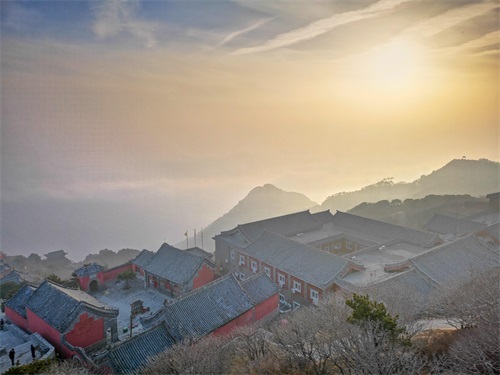 三官庙:面积780平,建在主峰半山腰绝壁上,气势宏伟;