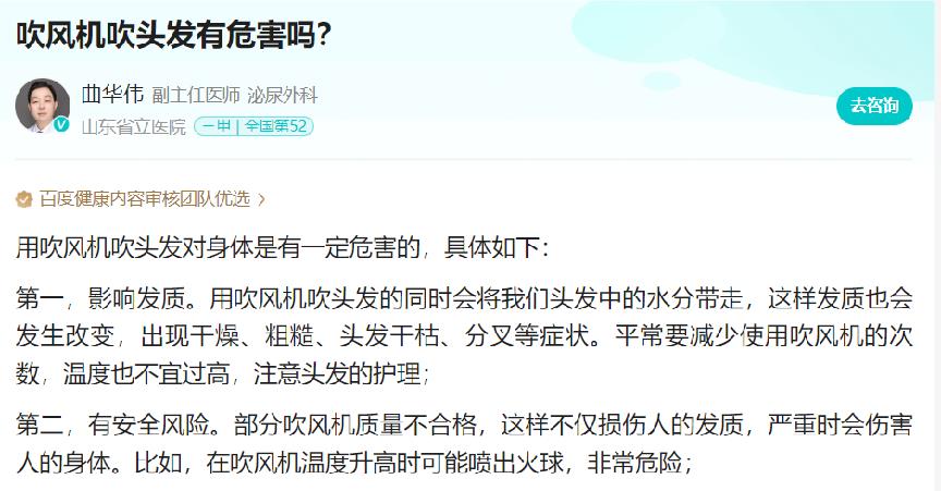 当秃顶概率越来越高,头发没有韧性像枯草干燥易断,多重发质问题严重困扰着大家,使用养发护发型吹风机成为重中之重。由于吹风机品质问题,很多人发现长期使用吹风机不仅不能改善发质问题,反而使发质损伤更加严重,那长期使用吹风机的危害有多大?接下来,我将为大家进行科普: