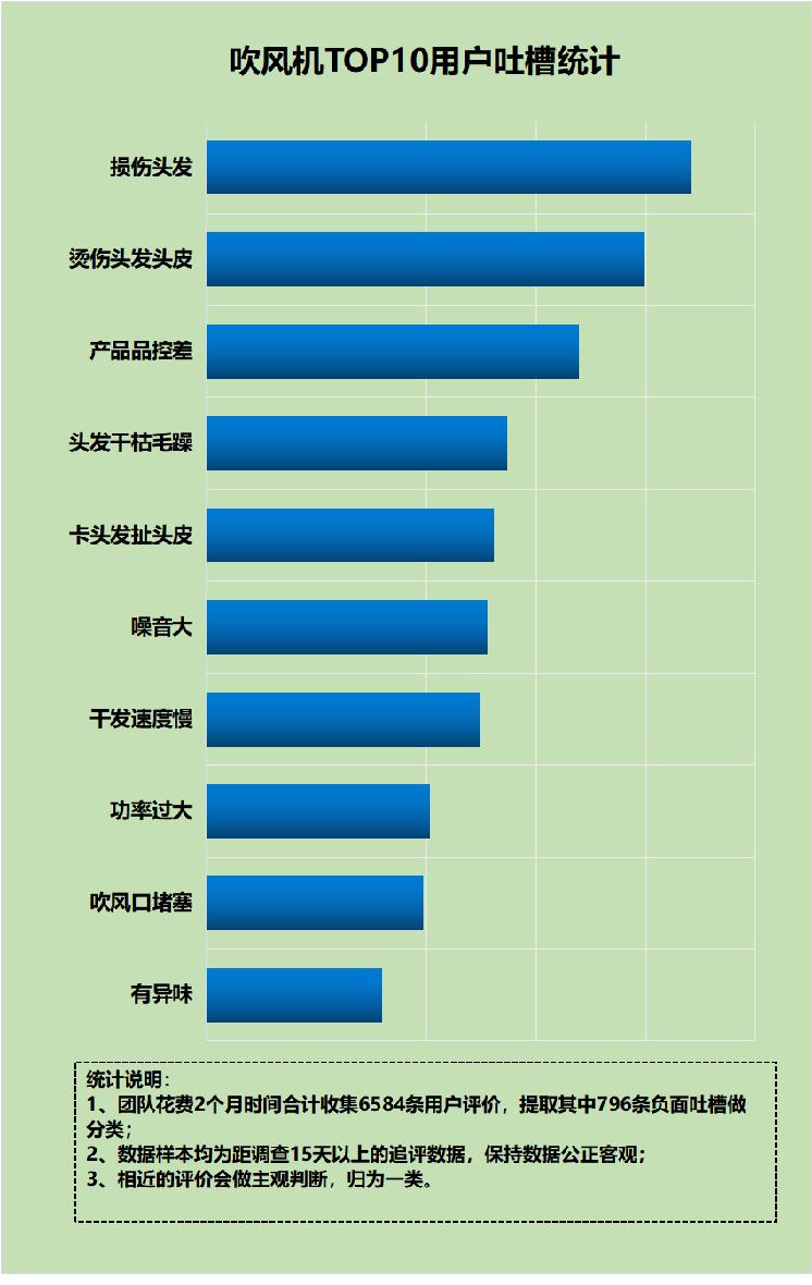 长期使用电吹风的危害前面已经给大家科普过了,经常使用非专业吹风机会给发质、安全等带来多重严重危害。相信很多朋友开始好奇,究竟是什么原因导致了非专业吹风机存在危害?为了让大家能够更直观地感受其原因,我给大家看一份网友吐槽吹风机的投票图片(如下图所示),通过这些数据,跟大家聊一聊是什么原因导致了劣质吹风机的危害。