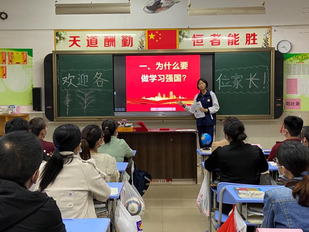 11月17日,东凤中学召开2021级初一级家长会,特地增加了“学习强国”推广环节,邀请两位优秀学生代表黄鑫杰和杨思琪做线下推广及经验交流。