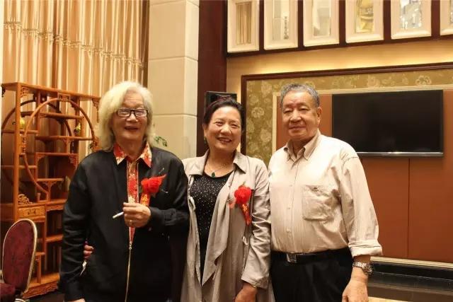 国家一级美术师、中国心象重彩山水画创始人江爱松(左)、江爱松夫人黄丽珠女士(中)、福建省书法家协会主席陈奋武(右)