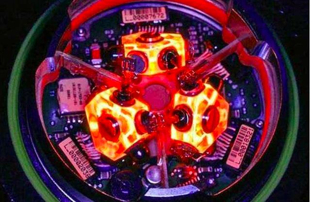 激光陀螺,学名“环形激光器”。实际上是一种无质量的光学陀螺仪,利用环形激光器在惯性空间转动时正反两束光随转动而产生频率差的效应,测定敏感物体相对于惯性空间的角速度或转角,进而测定物体方向等。
