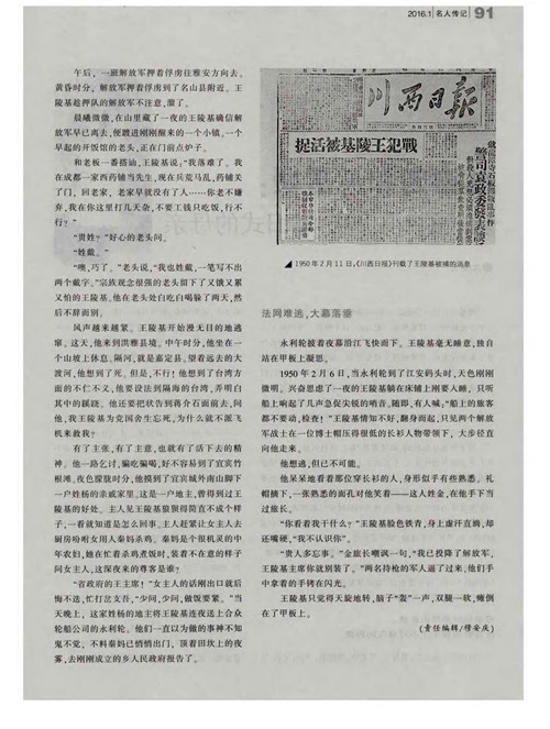 1950年2月11日,《川西日报》刊载了王陵基被捕的消息