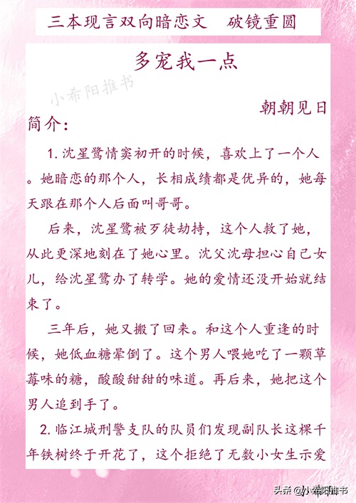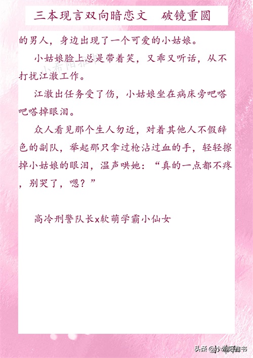 今天推荐三本现言双向暗恋文,久别重逢系列。男女主一直暗恋着对方,后因事情分离,再次相逢,一定再续缘分。