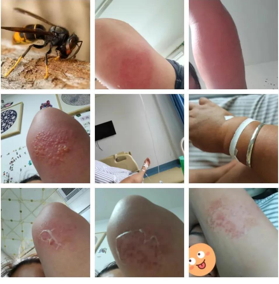 就是第一章图片这个家伙“马蜂”蛰了我一下,当时不知道是什么东西在胳膊上爬,就下意识用手拍了一下,感觉像针扎了一下。仔细一看打的是马蜂。这下好了,被马蜂蛰了,刺还在皮肤上,赶紧把刺取下来。当时就觉得火辣辣的疼,也没在意,就擦了点风油精。抱着侥幸心理,觉得会没事的,感觉也有点在消了肿了,就没在意。没想到第二天,越来越严肿。那整个胳膊肿到了手腕上去了,被蛰的地方开始起了密密麻麻很多很多的小水泡。经过五天住院的治疗,终于可以出院了,水泡全部消了,已经结疤。在此跟朋友们讲一下,不管什么东西在身上爬,一定要看仔细了再拍打。不要像我这样盲目的去拍打,不然就是我这样的后果。被蛰了最好马上医院治疗。