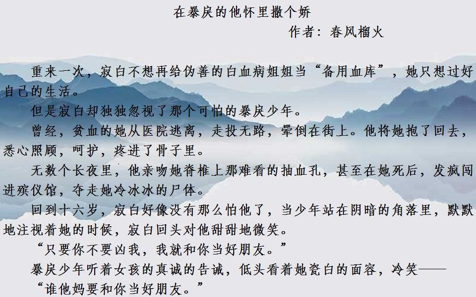 你是我阴暗世界里唯一的光,推一波男主偏执病态,专宠女主的好文
