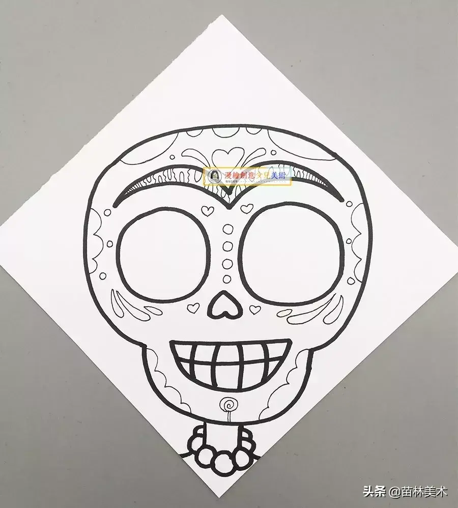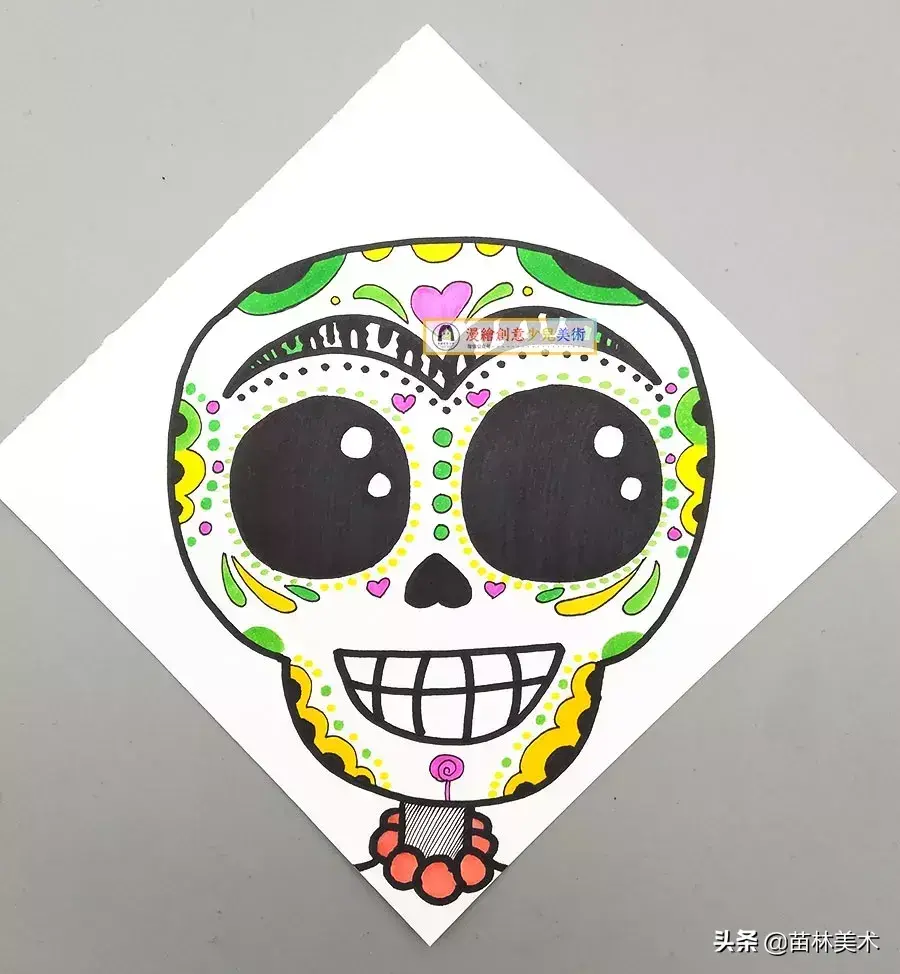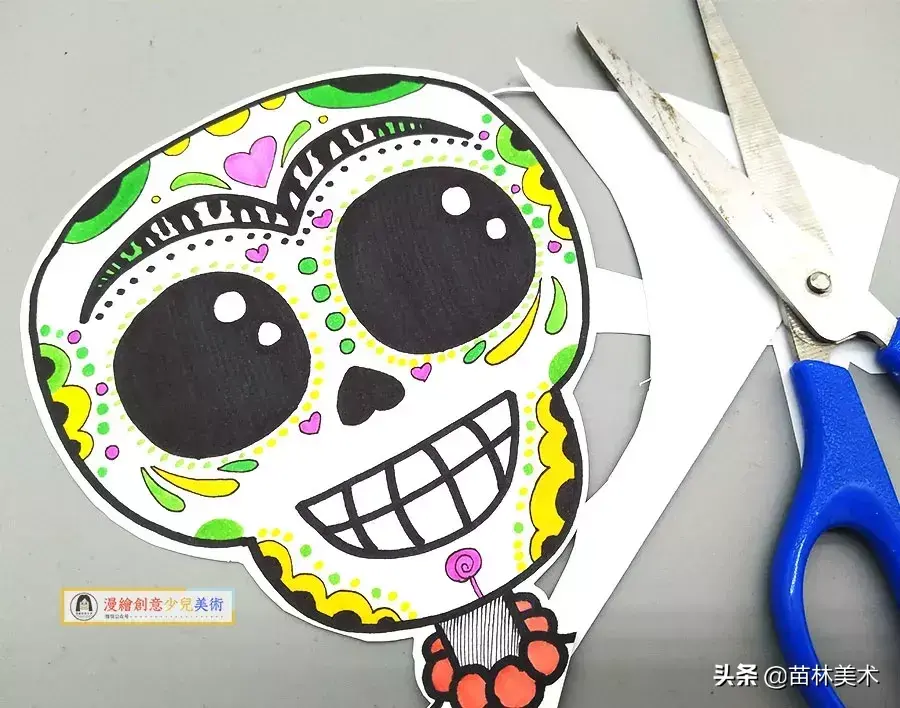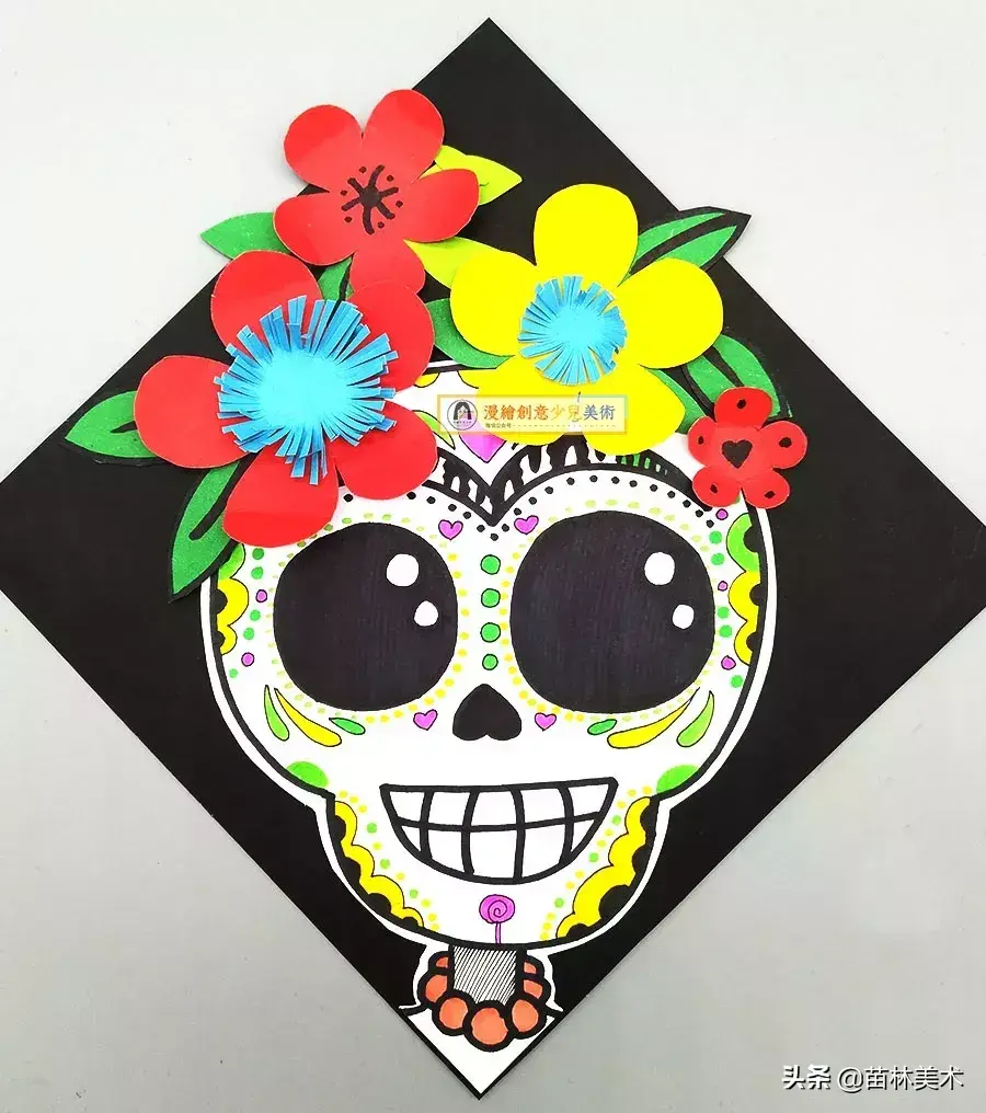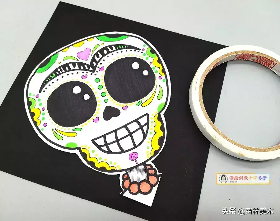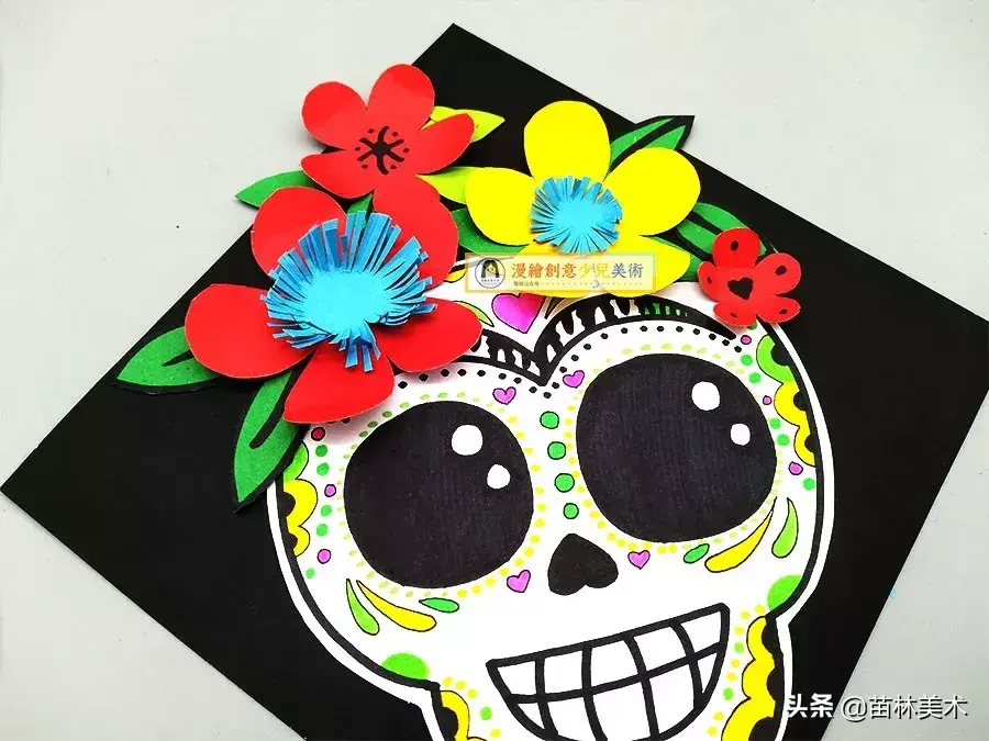 儿童画创意丨可爱的骷髅头剪贴装饰画