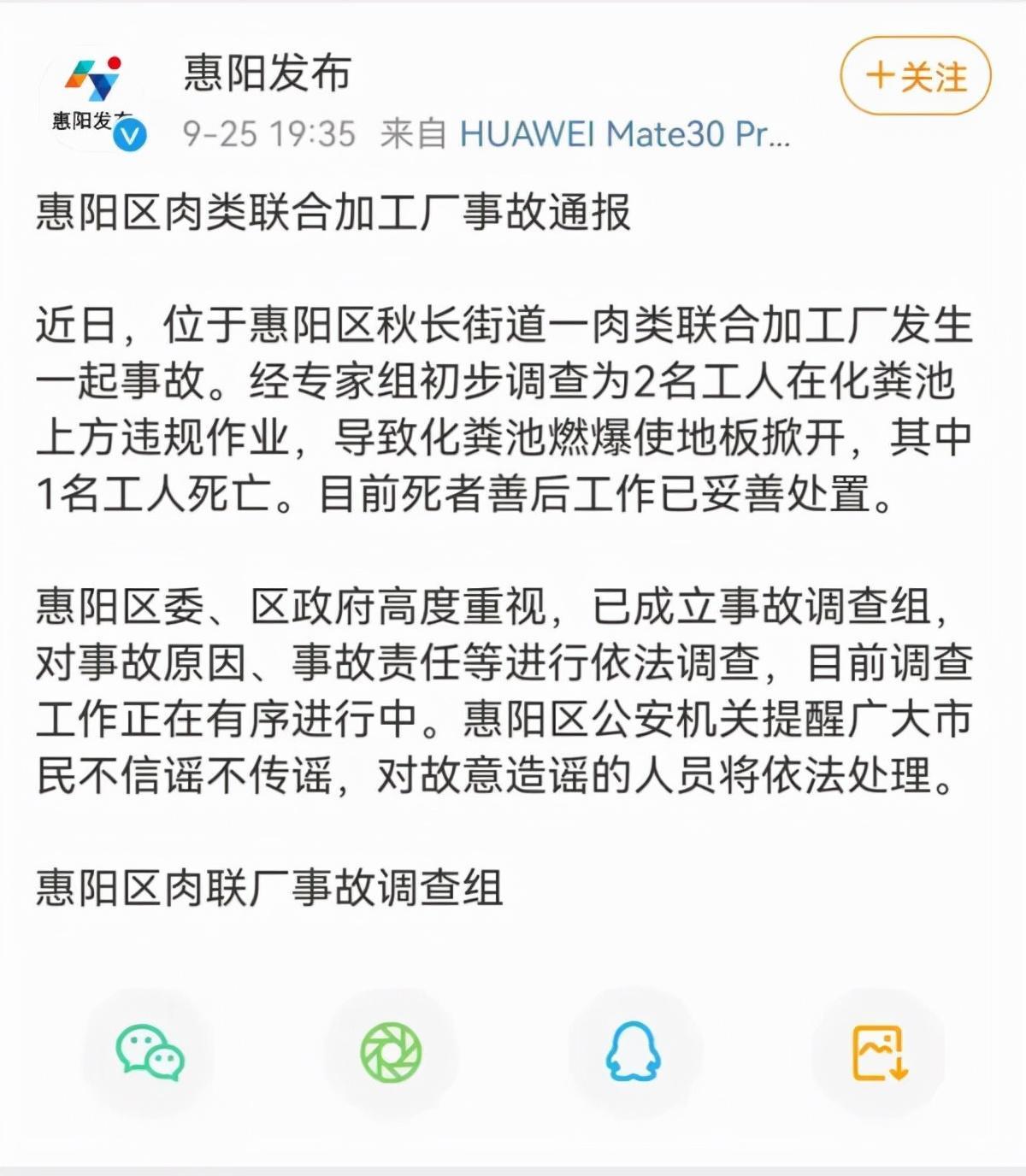 就在近日,广东惠州惠阳区秋长街道的一家肉类联合建工厂内发生了化粪池燃爆事故。事故导致了化粪池燃爆,同时地板被掀翻,甚至其中1名正在作业的工人丧生。而事故原因,初步判定应该是当时正在上方作业的2名工人违规作业,然后造成了化粪池燃爆。事故一发生就引发了工厂、区委及区政府的高度重视,甚至一度登上热搜榜,在当地引发了热议。
