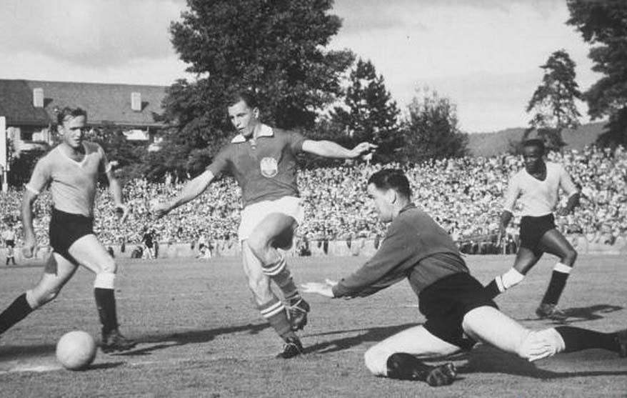 1958年在瑞典举行,季军:法国,殿军:联邦德国。三四名决赛在法国和联邦德国之间进行,最终法国以6-3战胜了联邦德国。方丹大四喜,也就是在这届世界杯方丹创下了单届世界杯13球的纪录。