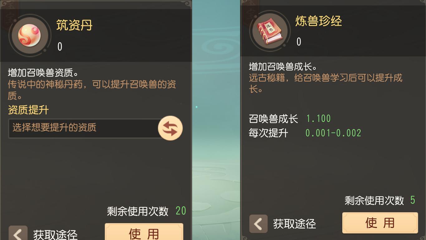 通过加点优化之后,玩家还可以通过购买一定的道具帮助宠物提升属性,根据游戏规则,每一只宠物最多可以使用20颗筑资丹,还可以使用5本炼兽珍经,通过这种方式都可以提升宠物的实力。