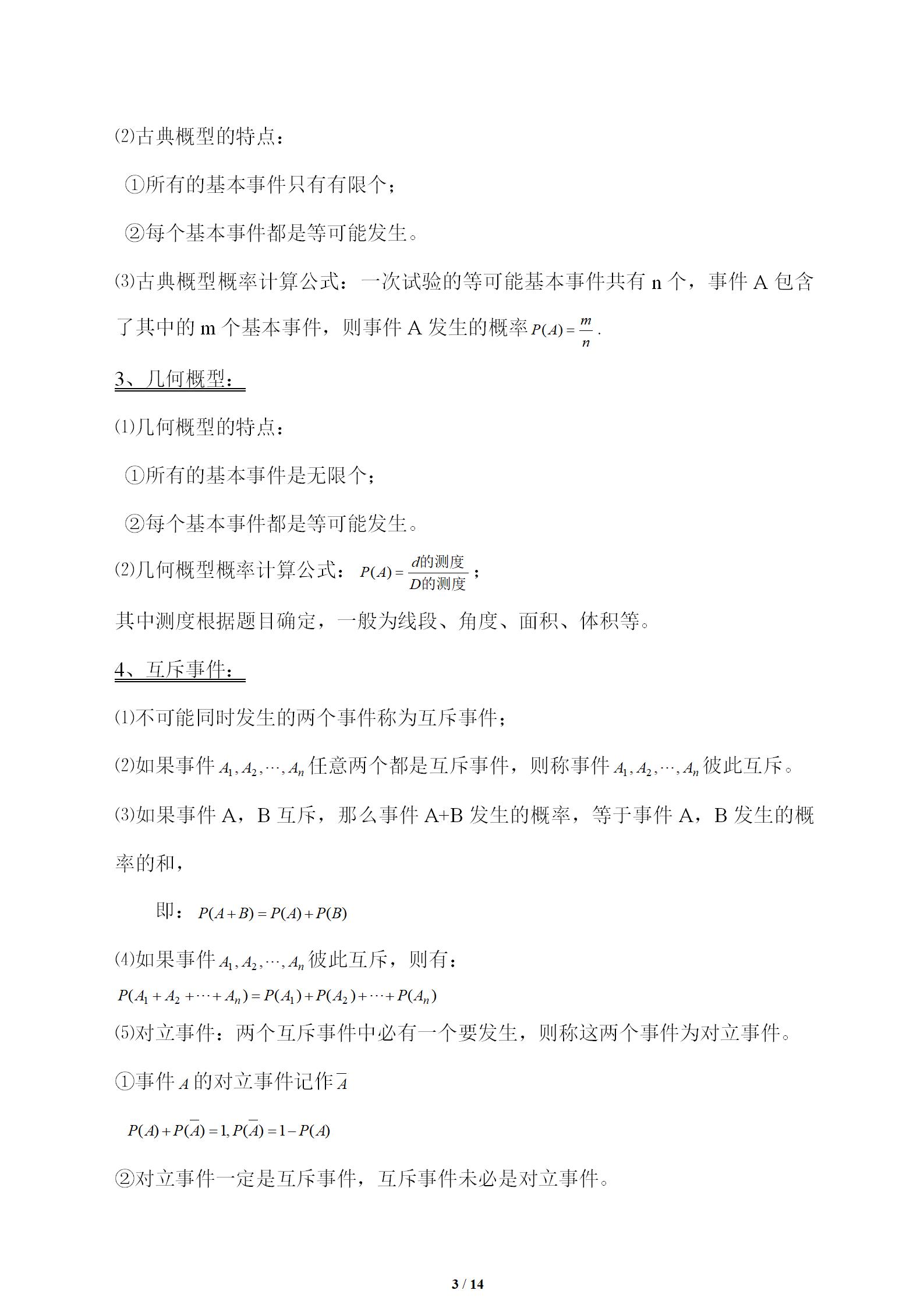 概率、统计基本知识归纳总结