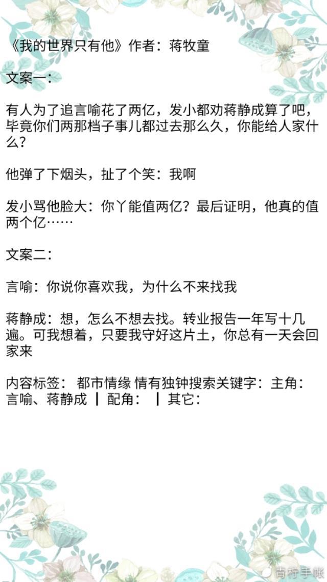 强推蒋牧童好看小说合集,时光与他,恰似正好~我的世界只有他