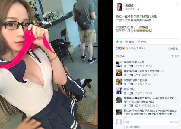 张语昕26日在脸书透露,最近一直会接到无显示号码的来电,还不小心接到诈骗集团打来的电话,甚至被莫名其妙地骂了一连串的葬话,让她觉得相当傻眼,自己连一句话都没有回应,到底为什麽会无辜被骂呢?