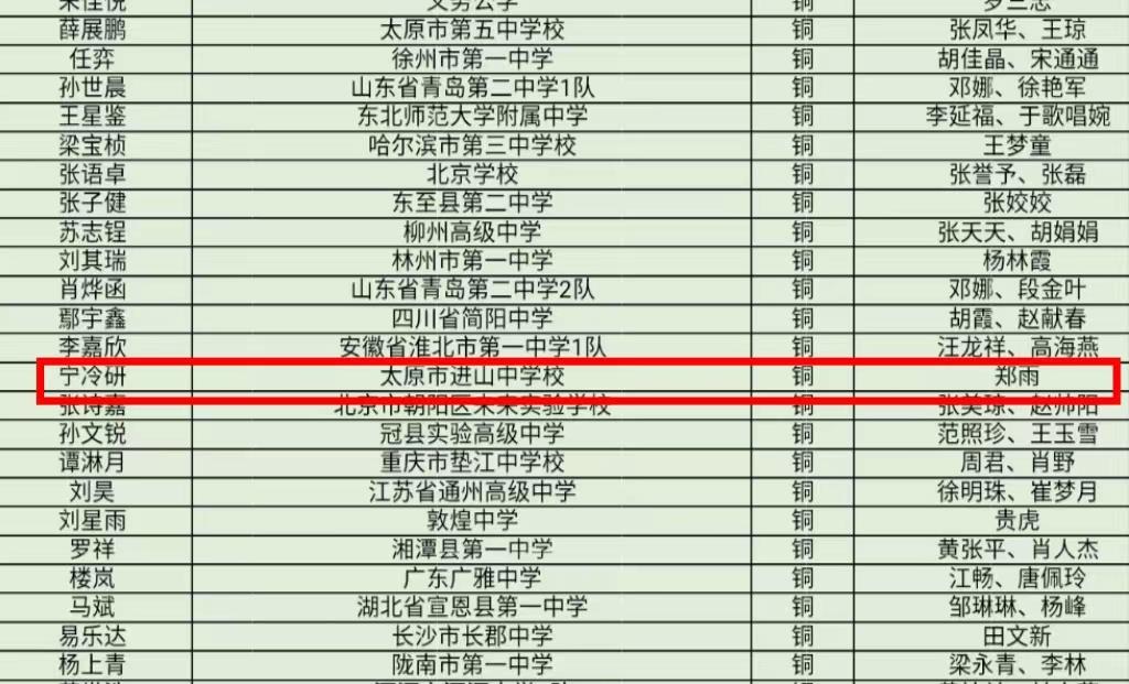 太原市进山中学校G2208班宁冷研同学荣获第二十届国际中学生地理奥林匹克竞赛中国大陆地区选拔赛铜奖!
