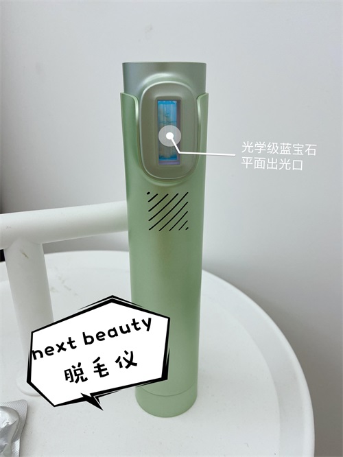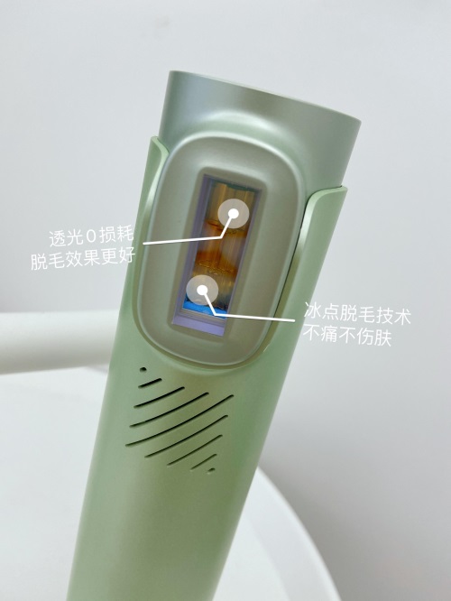 它的出光口是一整块光学级蓝宝石,透光性超级高,近乎0损耗可以把6J/cm²能量直接戳进深层毛囊~而且这种有效面积比较大的平面出光口,可以紧紧压住皮肤,脱毛效率会高很多,节约时间哈。