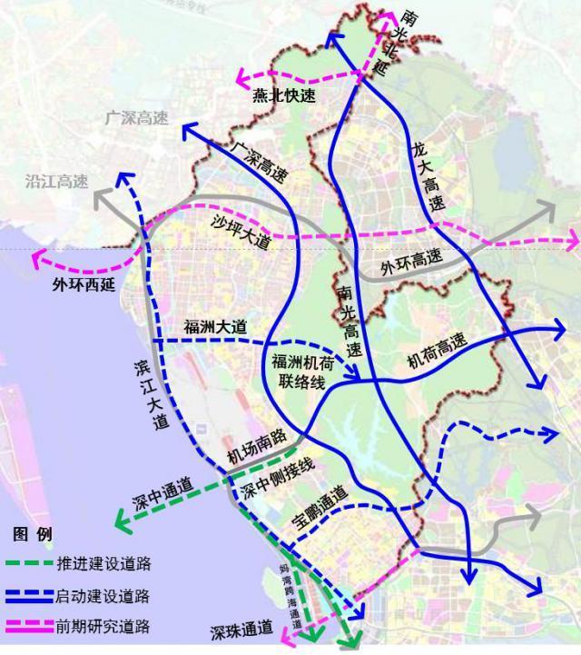为此,宝安将加快高快速路建设,构筑联动湾区的"八横六纵"对外通道体系。推动深珠跨江通道开工建设,加强 107 国道、宝安大道等区内骨干路网与深中、深珠等跨江通道的有效衔接。推进城际铁路规划建设,构建湾区都市圈轨道骨干网络。增强湾区城市水、陆公共客运的便捷性,探索与珠海、中山推进道路客运班线公交化服务,促进大湾区公交一体化建设。推进沿江高速二期等联通湾区城市的高快速路网建设。推进穗深城际线(二期)建设,推动深大城际线(33 号线)建成通车,开展深莞增城际、深大城际西延以及深港西部快轨等通道的研究工作,争取深莞增城际设站燕罗。加密深圳 - 中山、珠海、香港、澳门游轮班次。