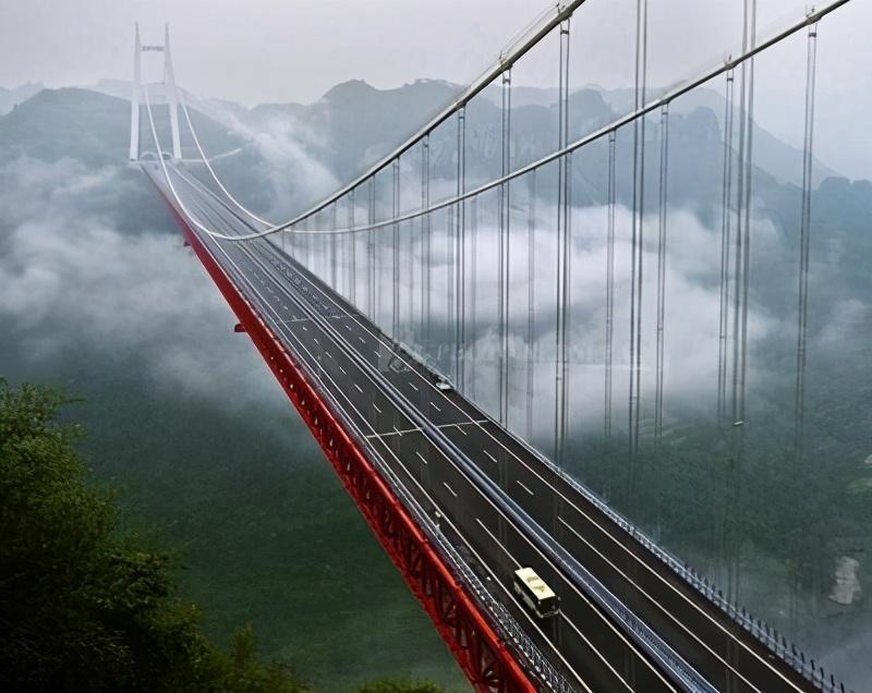 这座大桥累计投资6.18亿元,从2004年开工建设到2009年通车运营共耗时了5年,因为桥身极高,有时候云海覆盖大桥,经过车辆犹如在仙境中穿梭,因此也被誉为“天路中的天桥”,而在阳光照耀下的桥体呈橙色横跨天堑,可谓是雄伟壮观。
