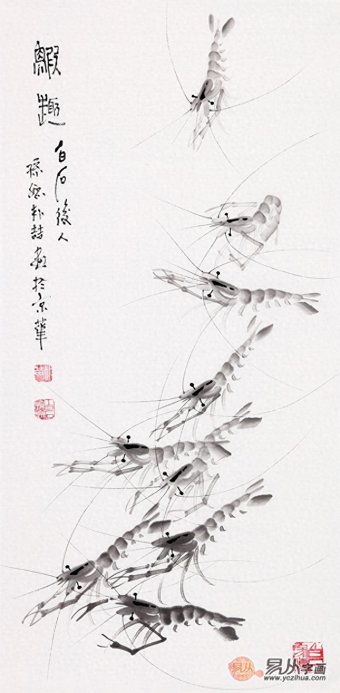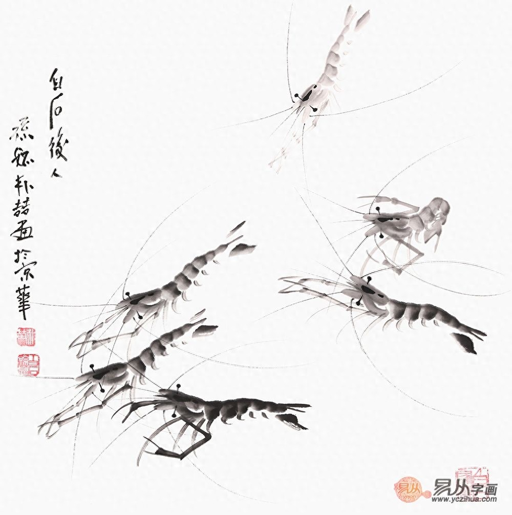 齐白石画虾堪称画坛一绝,齐白石画虾通过毕生的观察,力求深入表现虾的形神特征。