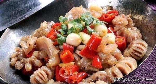 13.菊花牛鞭,此菜造型美观,口昧香醇,色泽鲜亮。既有食用价值,又有药用价值,具有滋肾润肺,强筋壮骨之功效。