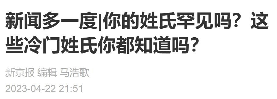 参考资料:新京报——新闻多一度|你的姓氏罕见吗?这些冷门姓氏你都知道吗?
