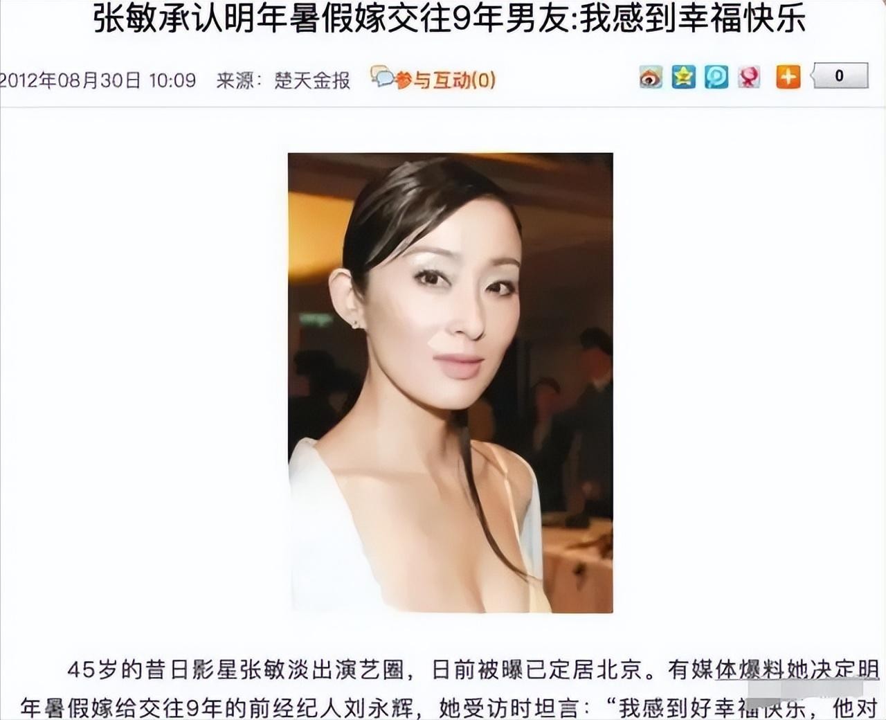 新浪网:张敏明年嫁前经纪人 感情经历大盘点