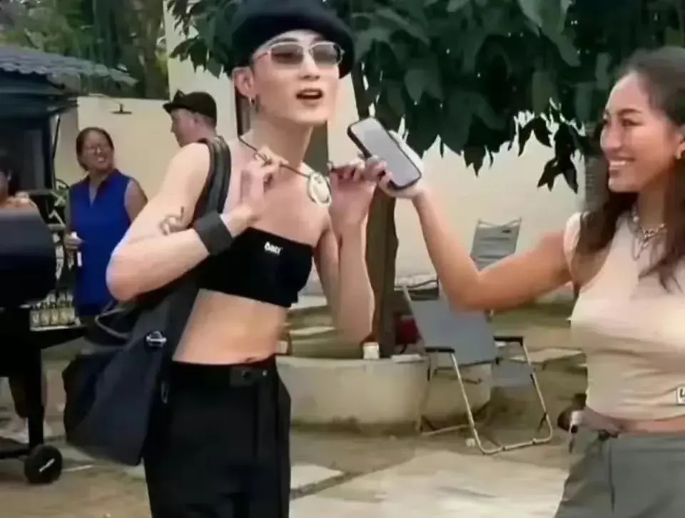 这张照片里她和歌手龙婷站在一起,她的一只手搭在龙婷的胳膊上,不知道这是关系好还是关系不好的说明。