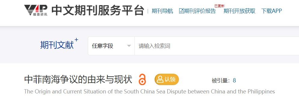 中文期刊:《海教史研究》中菲南海争议的由来与现状