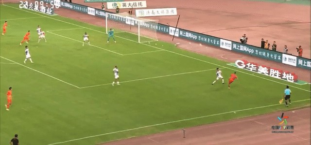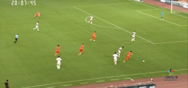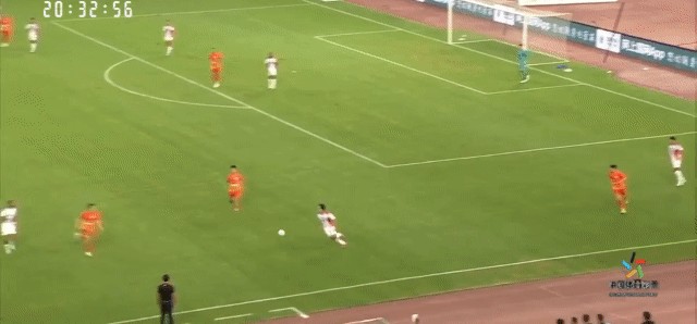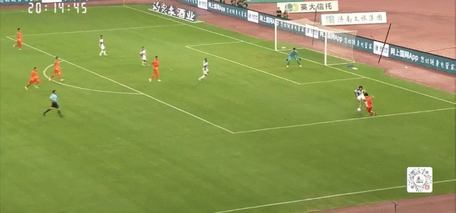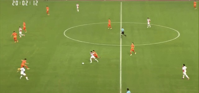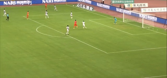 第110分钟,山东泰山通过斜长传的方式将球转移至右侧,张弛随即摆脱防守突入至禁区,可惜最后的攻门高出了球门范围。
