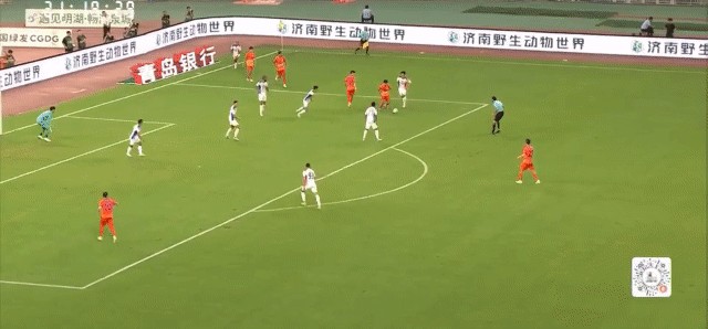 第32分钟,山东泰山在前场右侧控制皮球时,对方的30号球员日夫科维奇使出了一个相当粗野的铲球动作,主裁判也是对其出示了黄牌警告。
