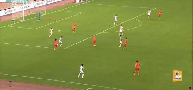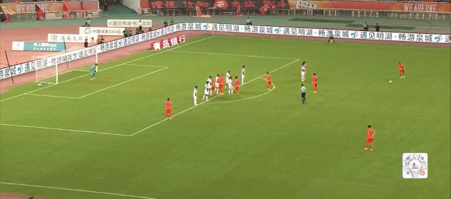 第34分钟,郑铮主罚的任意球八九不离十,皮球稍稍偏出了近门柱。