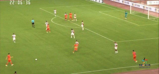 “橙色”为山东泰山的进攻画面