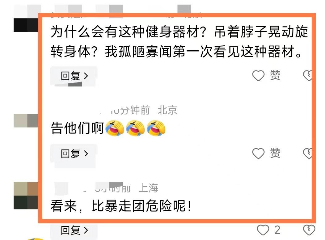 这个要起诉谁啊?为什么会有这种健身器材,吊着脖子转身体,这是什么操作啊,完全看不懂。
