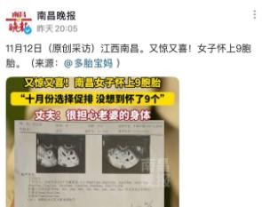 2.齐鲁壹点:《罕见!江西南昌一女子怀上九胞胎齐鲁壹点》2024-11-13