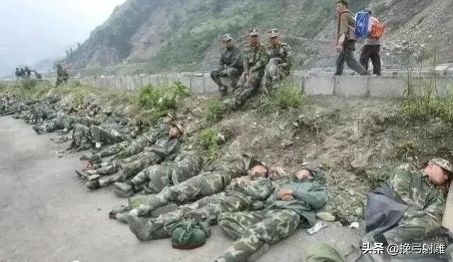 救灾的子弟兵们躺在地上短暂休息,连续不停的救人,他们身体早已疲惫不堪!