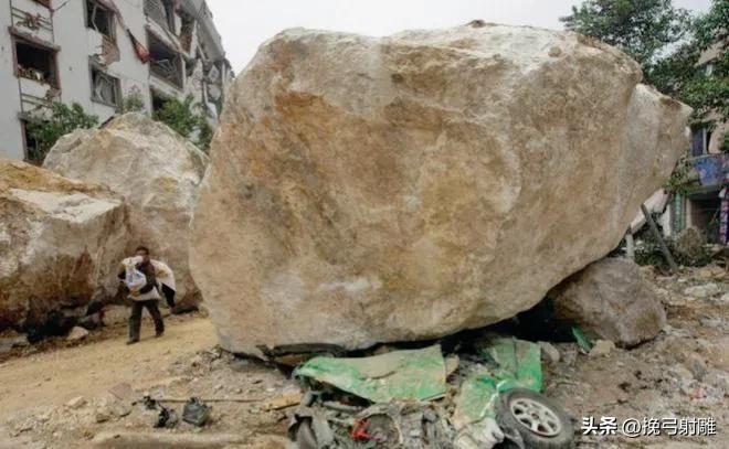小车被滚落的巨石砸成了“照片”