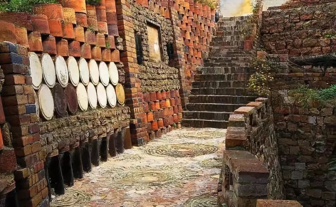 “这层层叠起来,真可谓人上有人,巷上有巷,墙壁是瓷的,台阶是瓷的,水沟是瓷的,就连地面也是竖着瓷片一页一页铺成的。站在这里一声呐喊,响声里便有了瓷的律音,空清而韵长,使人油然想起古罗马的城堡。”