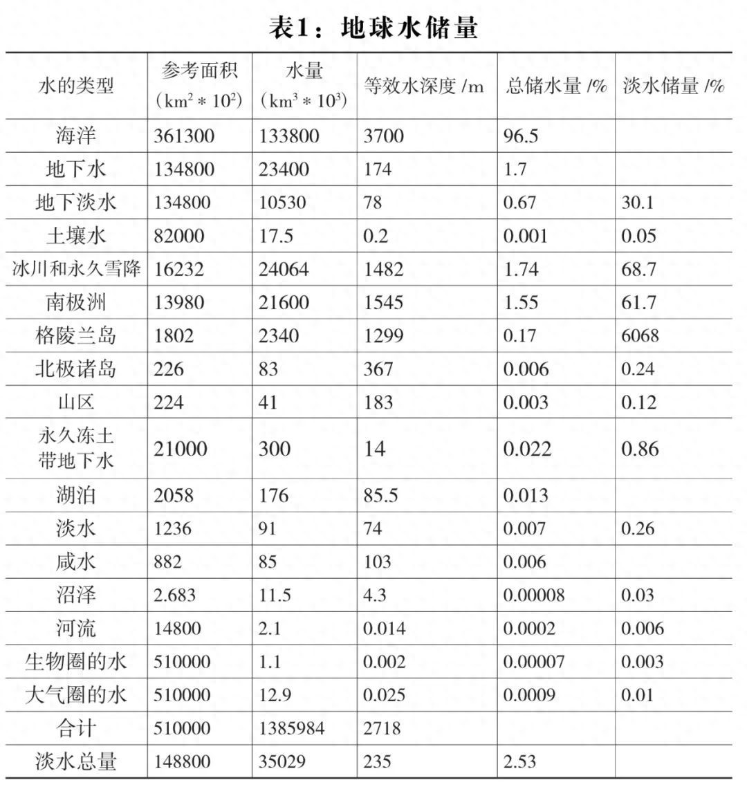古人云“三山六水一分田”,虽然地球上水资源总量达14亿立方千米,但其中约97.5%都是咸水,主要是海洋和咸水湖。