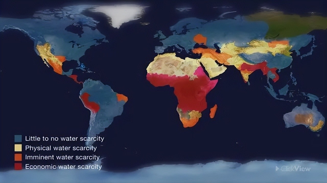 最为明显的是非洲撒哈拉以南的内陆国家,那里几乎没有一个国家不存在严重缺水的问题;在亚洲也存在类似问题。