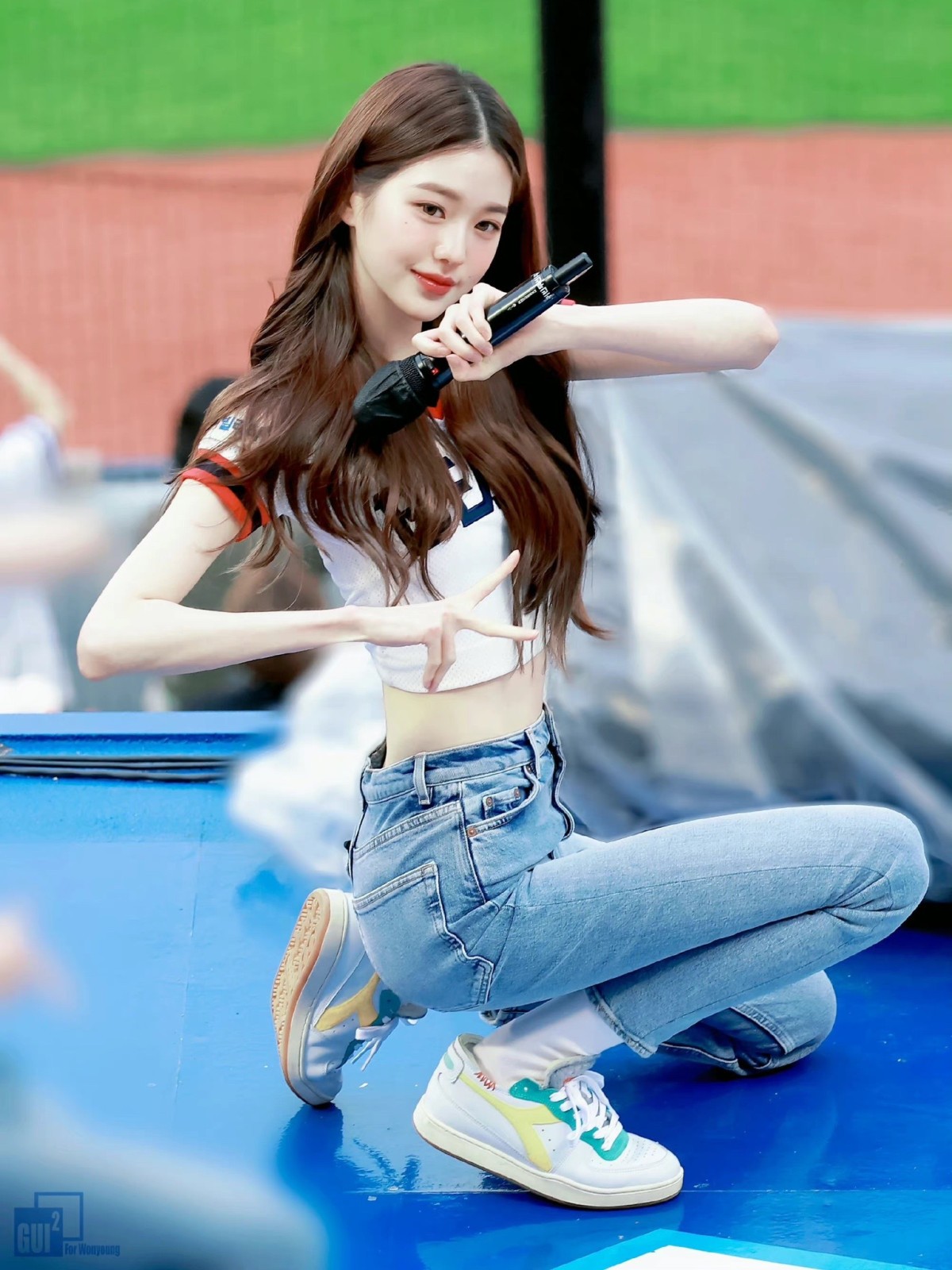年仅17岁就拥有173公分身高的张员瑛,身高仍在持续暴风成长中,也因为身高太高有了「巨婴忙内」的称号,过去也曾在节目上自爆会把自己修图修矮!日前的开球活动再度让张员瑛人气暴涨,神级颜值与超不科学的身材比例引起网友热议,紧身牛仔裤搭配短版球衣露出「蚂蚁腰」,且张员瑛不止「九头身」,是「十二头身」的超强比例!
