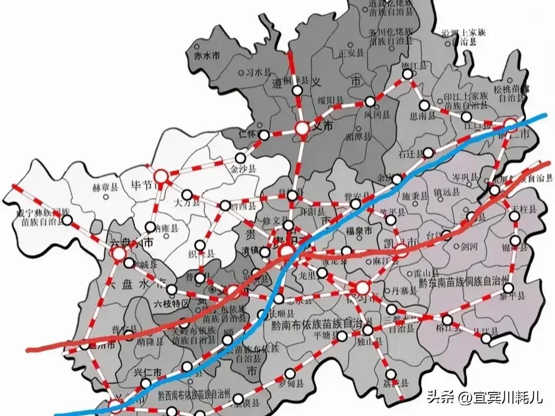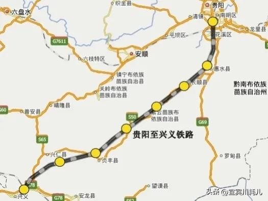 “贵兴高铁”,起于贵阳市,沿西南方向布线,经贵阳市南明区、黔南州的花溪区、惠水县、长顺县,安顺市的紫云苗族布依族自治县、关岭布依族苗族自治县、黔西南州的贞丰县、兴仁市(县级)、兴义市(县级),到达黔西南州首府兴义南站。全长大约280公里,设计为电气化双线客运专线,时速按 350㎞/h,最少不能低于时速250㎞/h,以方便对接对接昆明至兴义段。该条线路早在贵州省“十三五”期间,就曾有过规划,当时被定义为时速200的客货共线。贵州应该积极争取,将这条铁路升级为客运专线建设。线路站点:贵阳北—惠水站—长顺站—紫云站—贞丰站—兴仁站—兴义北站。