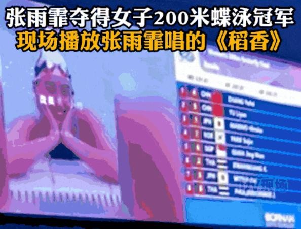 不止是当红热歌频频亮相,这届DJ不会放过任何玩梗的机会。“蝶后”张雨霏夺得女子200米蝶泳冠军后,现场播放起她自己翻唱的《稻香》。