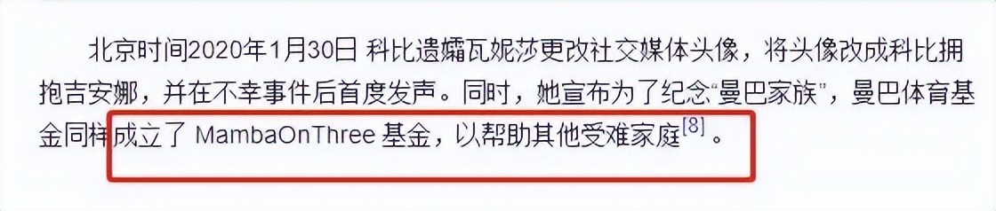 她宣布为了纪念“曼巴家族”,曼巴体育基金同样成立了 MambaOnThree 基金,用来帮助其他受难家庭。