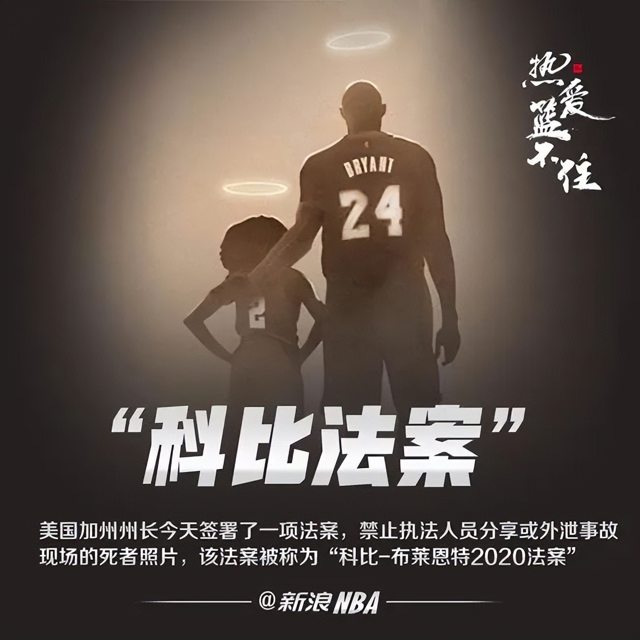 这次的案件,更是促进了法律的完善,洛杉矶发布了“科比法案”,也就是禁止执法人员外泄事故现场死者照片。
