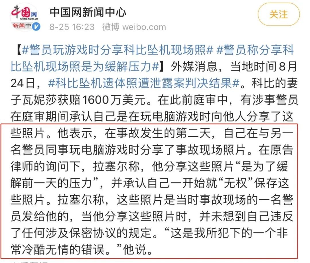 终于,科比坠机遗体照遭泄露案判决结果出来了。