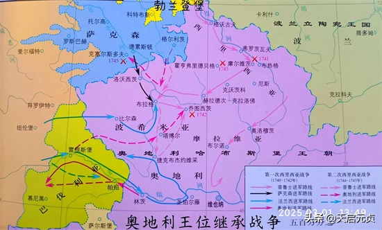 1740年,刚登基不久的腓特烈大帝就发动了对奥地利的战争,史称“第一次西里西亚战争”,是奥地利王位继承战争的第一部分。普鲁士不打则己,一打起来就轰轰烈烈。