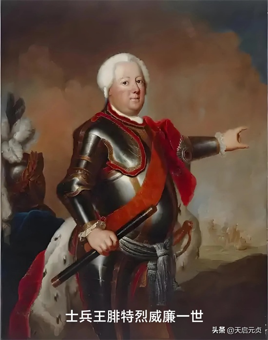 当然,腓特烈一世没有活到战争结束,1713年去世,他儿子腓特烈·威廉一世继位。腓特烈·威廉一世接手的是一个烂摊子,战争、瘟疫和他爹的奢侈生活使普鲁士经济濒临破产的边缘。所以,腓特烈·威廉一世在位时主要任务就是搞钱和练兵。