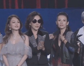由于舞台非常滑,鞋跟高且细很容易会再次发生滑倒,下台的时候,为了避免刚才的情况舒淇直接光着脚走了下来。