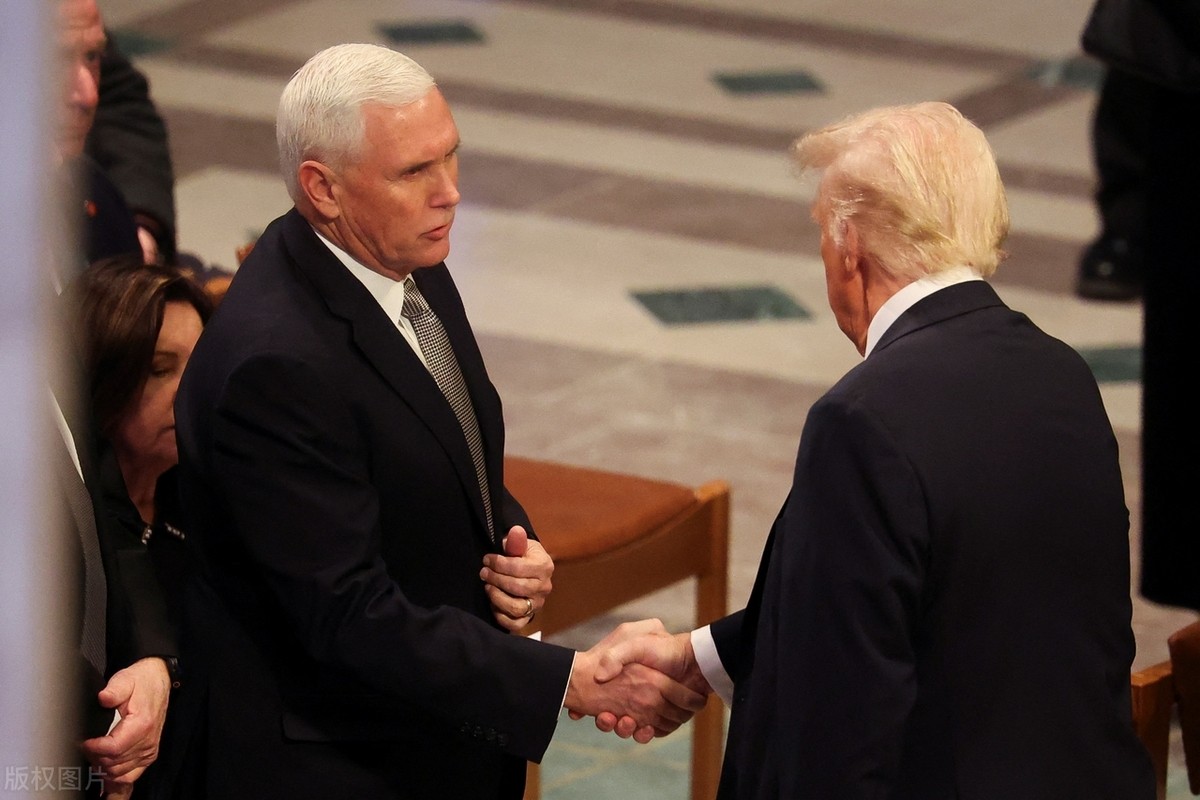 作为特朗普曾经的副总统,彭斯和特朗普关系早已决裂,但外界没想到特朗普能主动和彭斯握手,只是看得出来彭斯略显局促。在笔者看来,这不过是特朗普作为胜利者所刻意展示的“大度”罢了,如果特朗普竞选失败,他肯定不会参加这次葬礼,即使参加,也不会搭理彭斯,以及奥巴马。