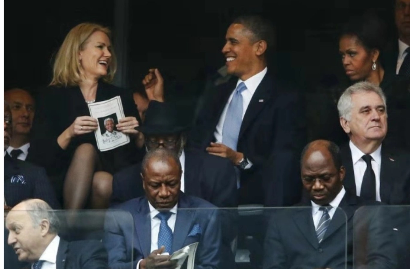 其实,这不是奥巴马第一次不分场合的“大笑”。在南非前总统曼德拉葬礼上,奥巴马和丹麦女首相施密特全程热聊,奥巴马不顾其妻子米歇尔的冷眼,更不在乎镜头对他的不停捕捉,肆无忌惮的说笑,以至于引来英国前首相卡梅伦的兴趣。事后三人的举动招致全球媒体的批评。