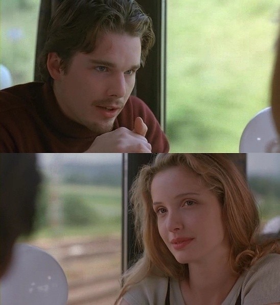 第一部《爱在黎明破晓前》在1995年上映,男女主角(杰西和席琳)在开往维也纳的火车上认识。
